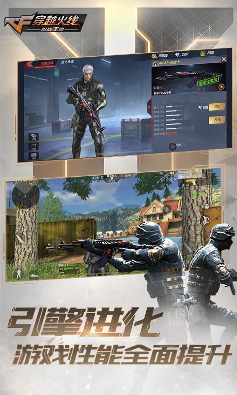 游戏的画面经过全新unity5引擎打造,应用最新的PBR真实感渲染管线,HDR高动态范围光照处理方案和ToneMapping色调映射技术,加入实时光照计算和动态光影效果,角色和枪械更加精细,特效更加爆炸,带动游戏品质全面提升。得益于全新引擎,在美术资源上不仅实现了对端游经典内容的重现,而且在带给用户熟悉感和亲切感之余,画面色彩更为厚重,光影对比更为强烈。